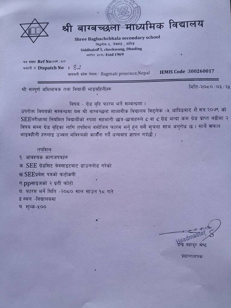 ग्रेड वृदि फारम भर्ने सम्बन्धमा