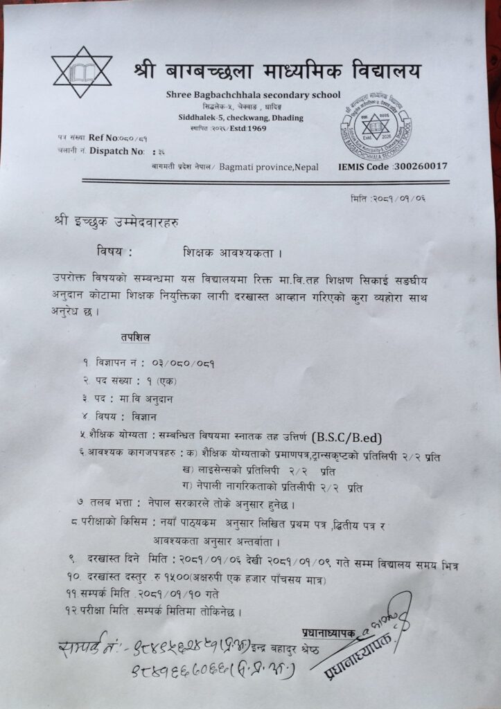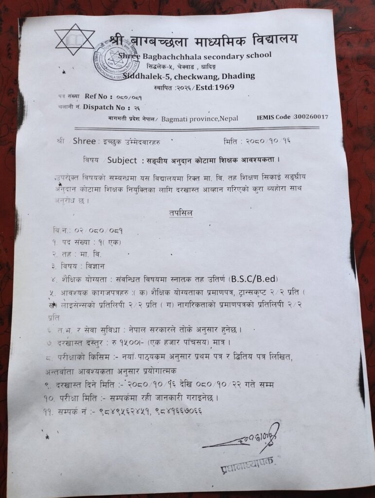 सङ्घीय अनुदान कोटामा शिक्षक आवश्यकता